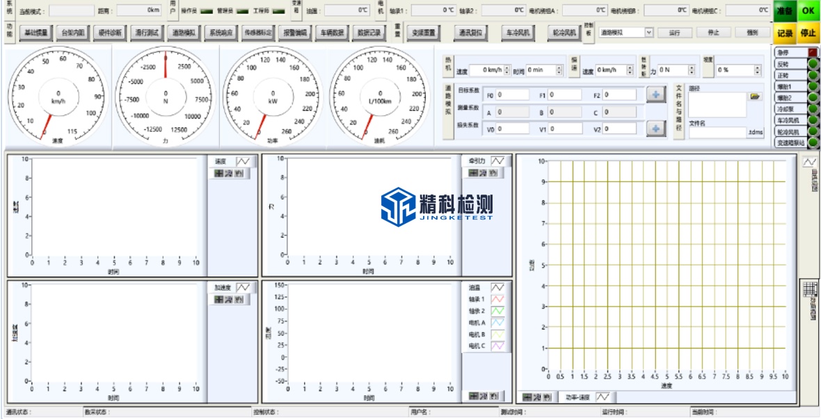 实时控制系统可对每个轮毂测功机进行独立控制,以及主从控制;还可以模拟坡道阻力等道路负载。