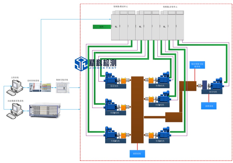 高速传动系统测试系统可根据待测试试验产品的需求,可由多台驱动电机和负载电机组成,轴系也可根据实时需求进行设计。